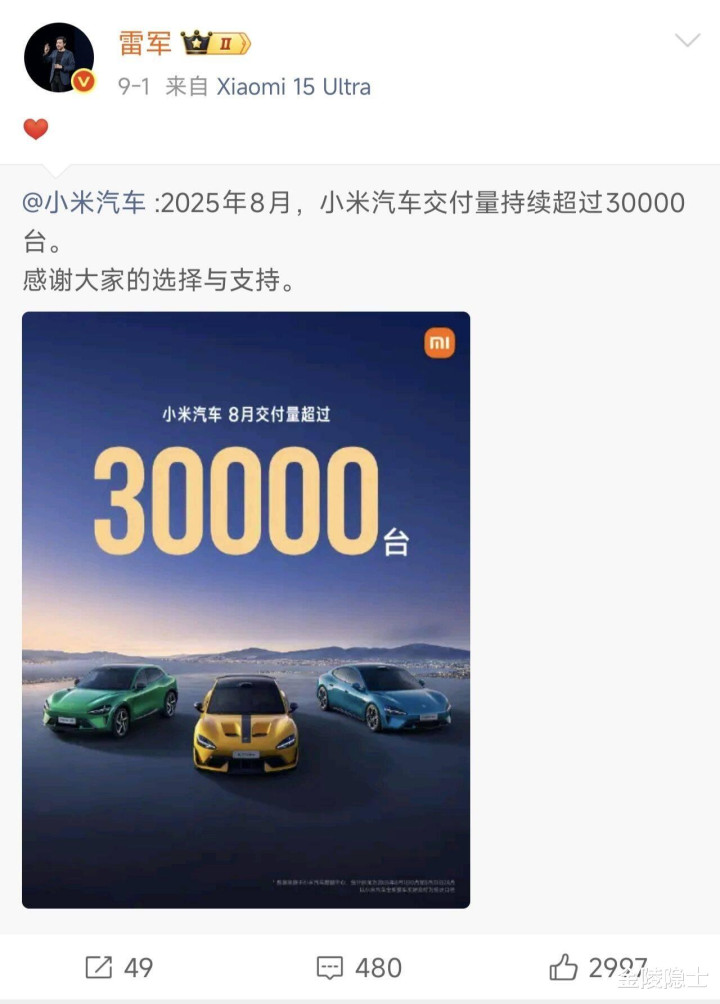 而小米汽车,在7月8月的交付量均超过了3万辆,不夸张的说,占据了该地新能源汽车产能的半壁江山。